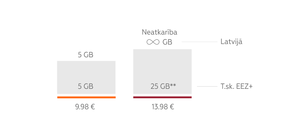 ** Iztērējot iekļauto interneta apjomu EEZ+ valstīs ārpus Latvijas, piedāvājam izmantot Internets ceļojumā iespējas.