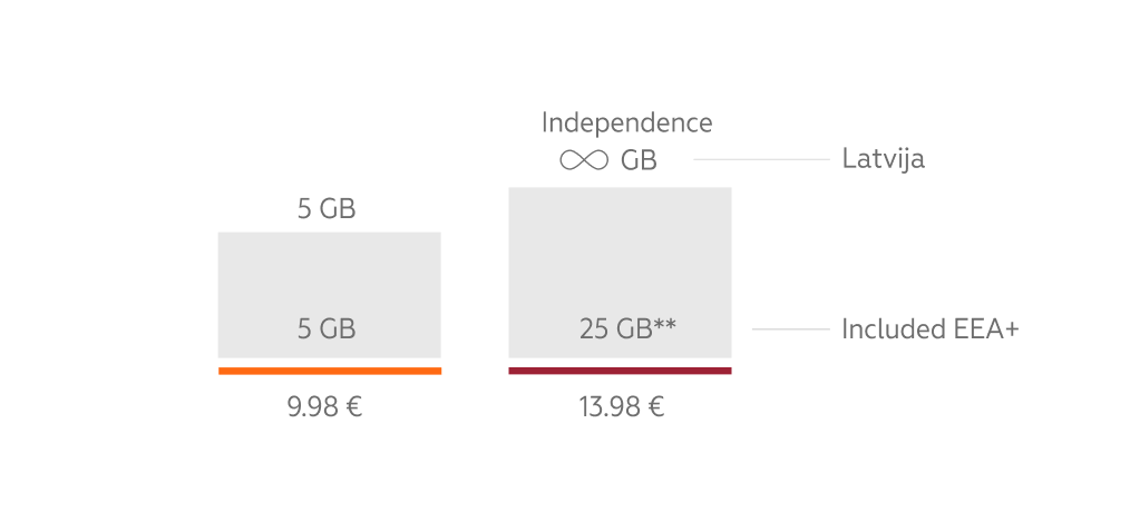 ** When using up the included amount of internet in EEA+ countries outside of Latvia, we offer to use Internet while Travelling options.