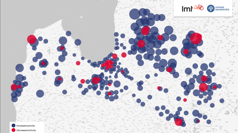 Comparing base station traffic load from March 3rd to March 27th, the largest drop in the load was observed in 11 base stations in the center of Riga, the capital of Latvia and the most populated city in the country.