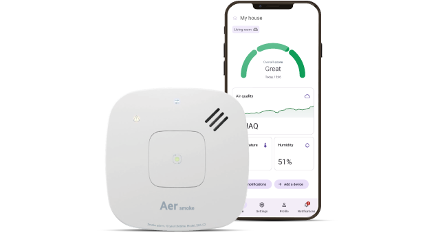 Aer smart smoke alarm and air quality monitor