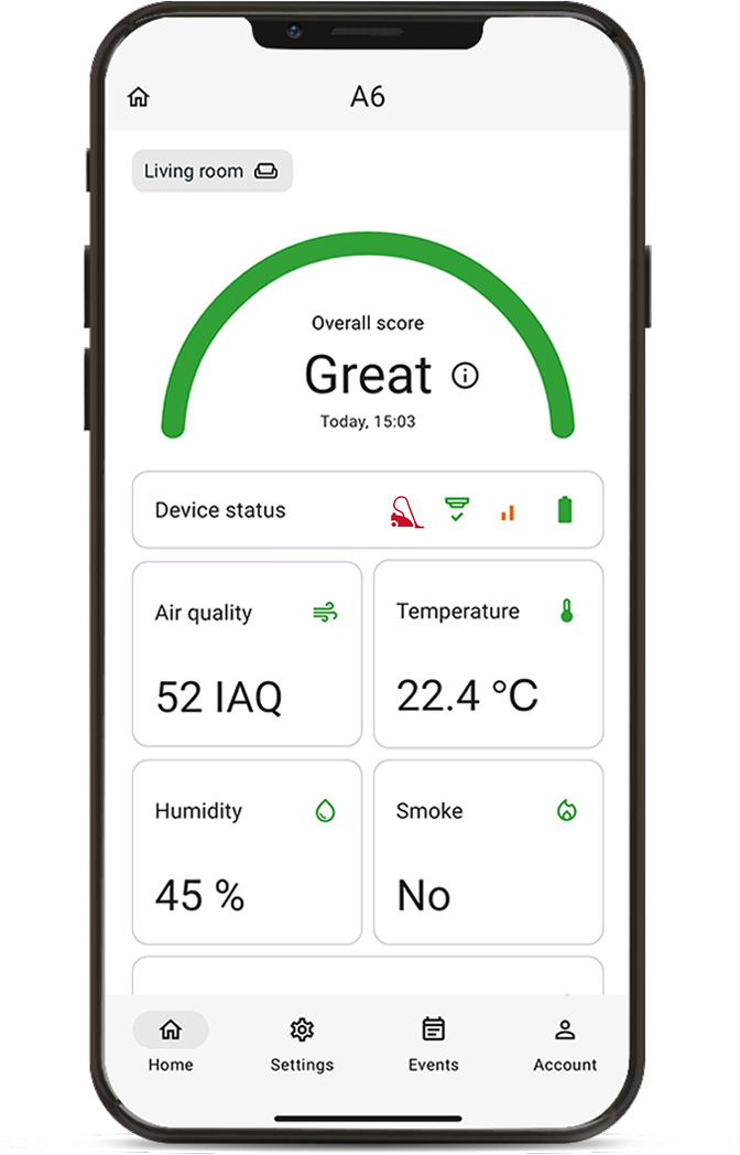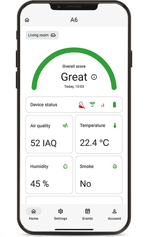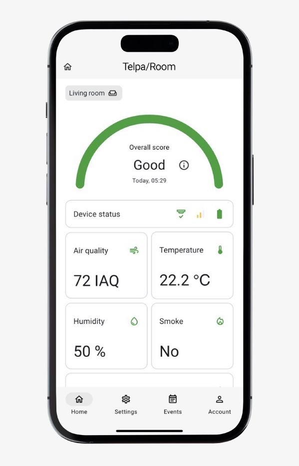 Elpo determines air quality by summing the most important parameters and displaying them in an easy-to-understand way in the LMT Elpo app.