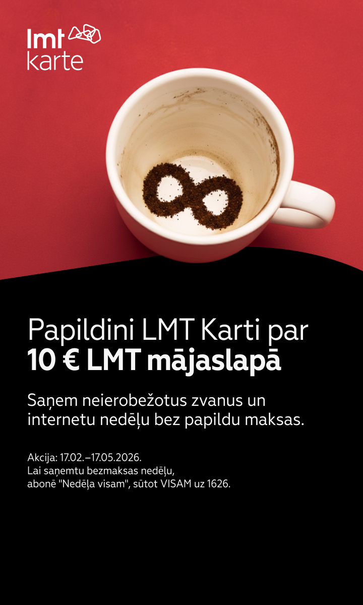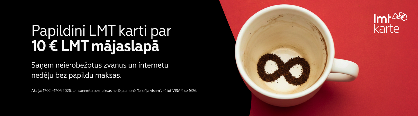 Papildini šeit LMT Karti vismaz par 10 € un saņem neierobežotus zvanus un internetu nedēļu bez papildu maksas.